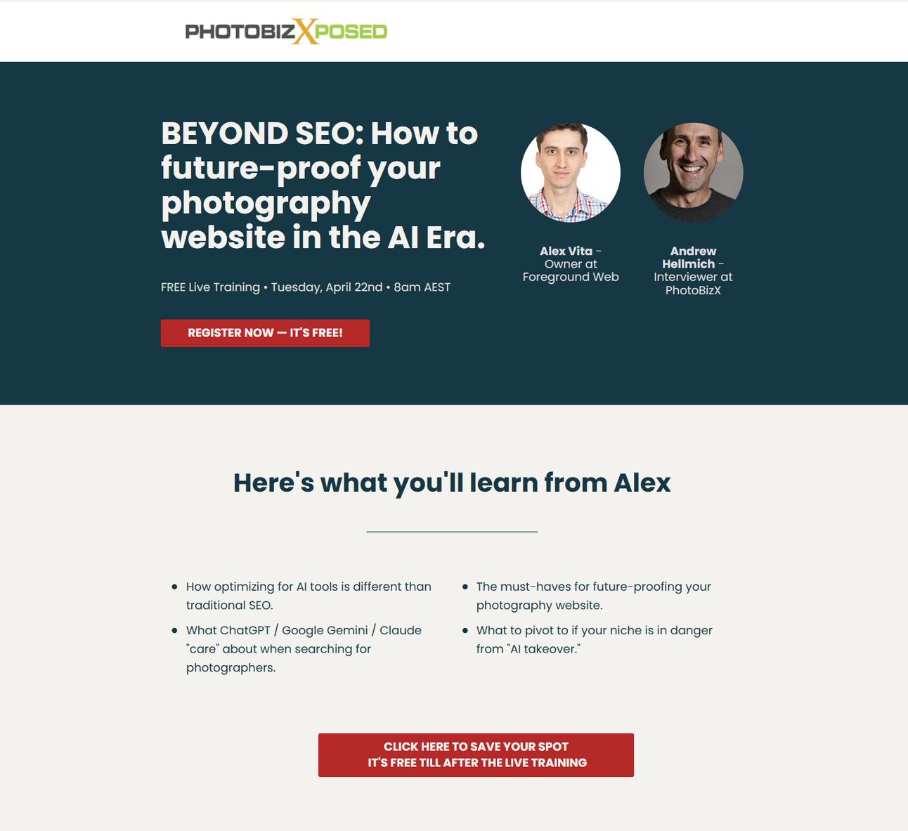 Last chance to register for the free training I'm doing for PhotoBizX.