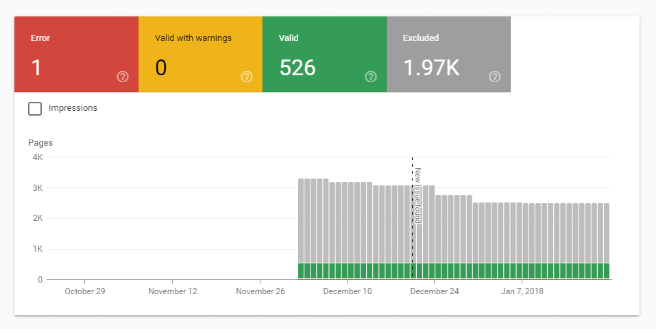 The Index coverage report should also be checked from time to time: